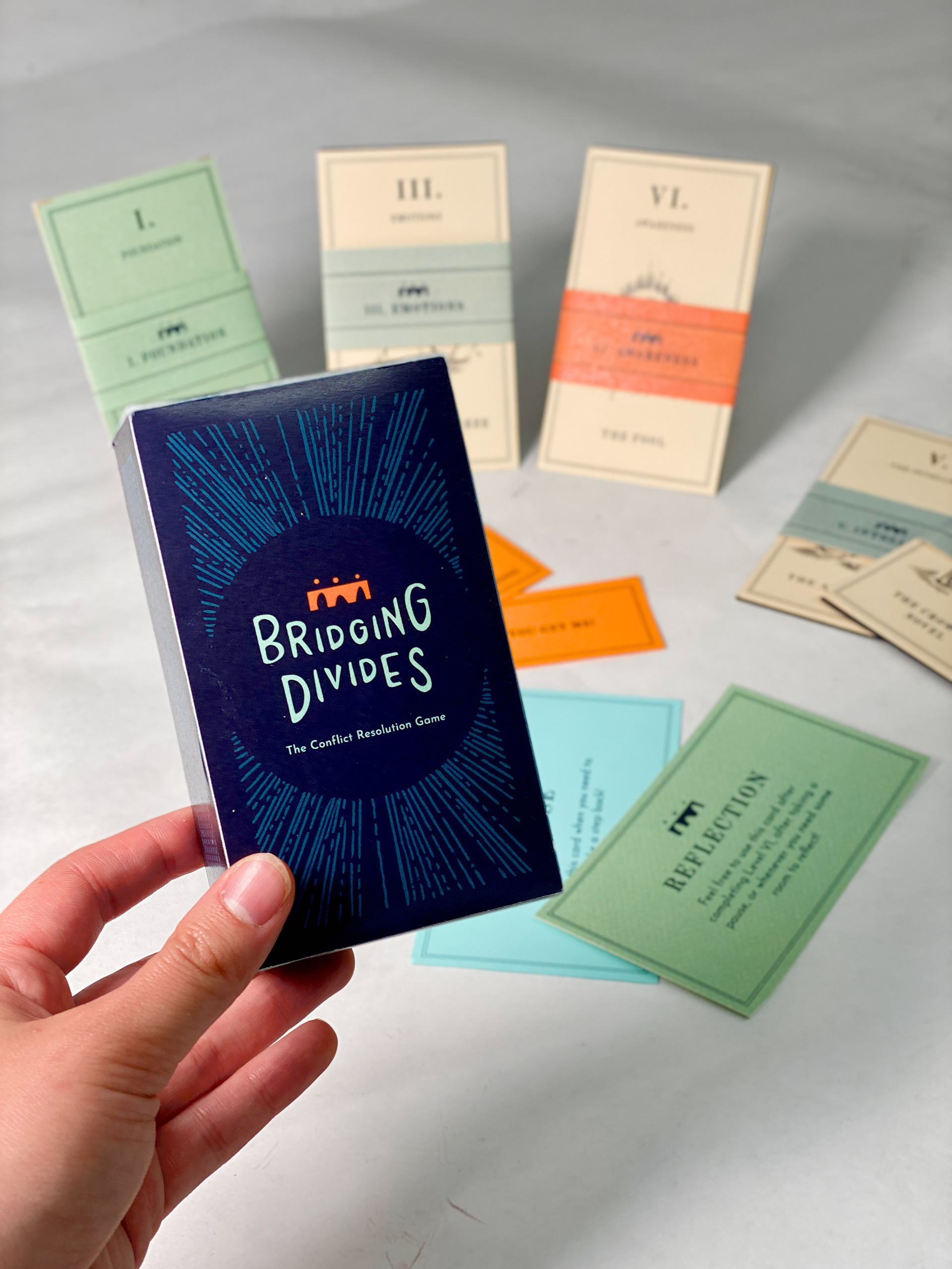 Bridging Divides is a conflict resolution game and toolkit. While political divides deepen and information becomes more saturated, Bridging Divides aims to make people more accessible to each other through contained experiences, therapy-informed tools, and joyful illustrations.