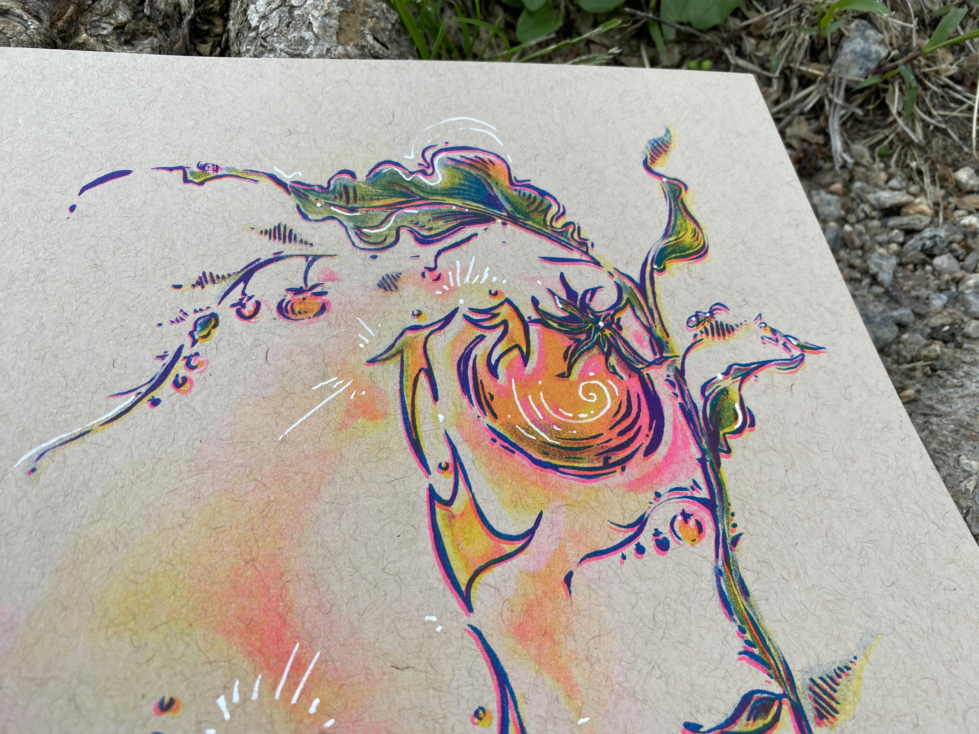 Printed on Strathmore 400 series Toned Tan paper, it is 118 g/m2, 100% recycled, contains 30% post-consumer fiber, acid free, and archival. ♻️