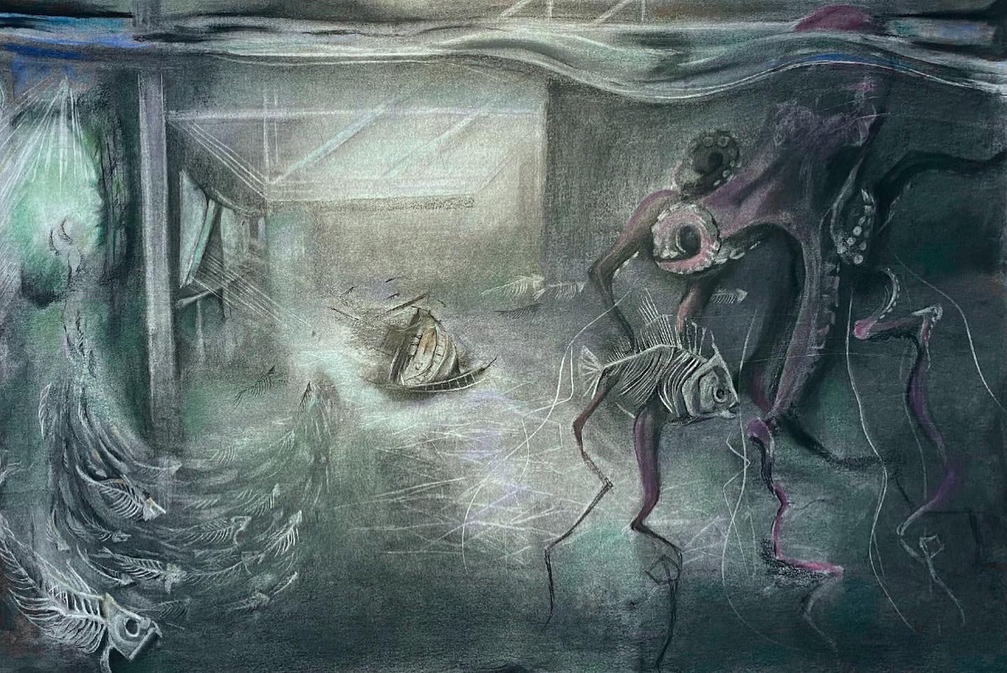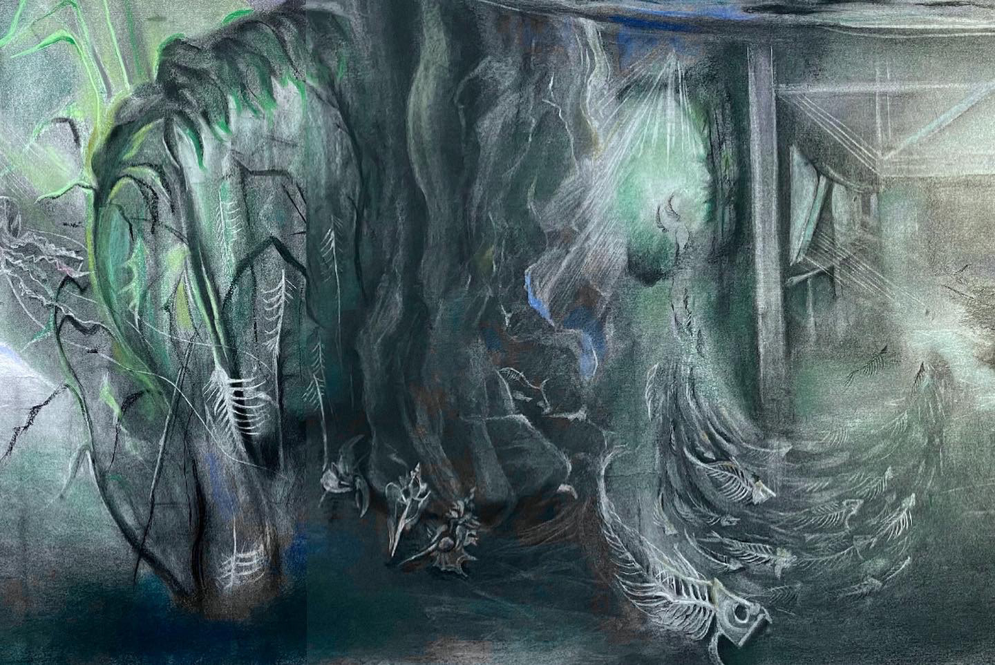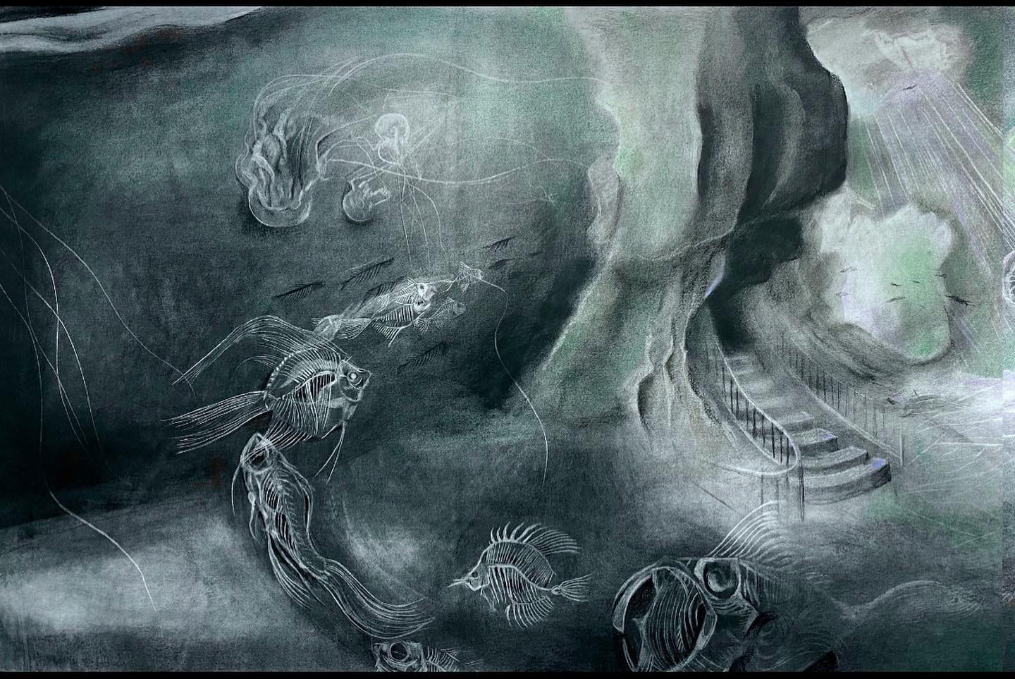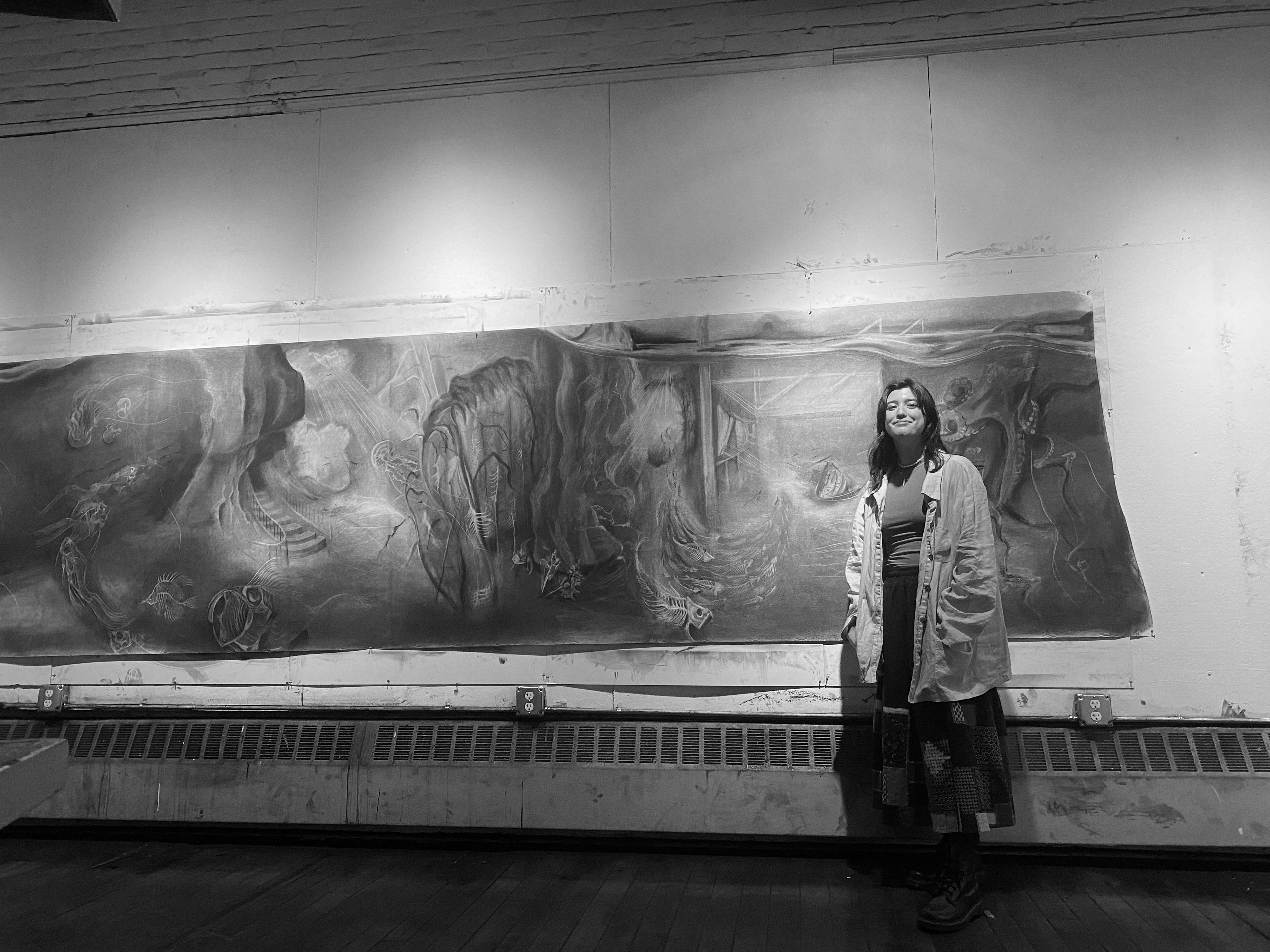 "Heavy Bodies" is a 4-foot by 14-foot charcoal and pastel drawing that was reprocessed into an Adobe Premiere animation. This project was created during RISD's Drawing Marathon.